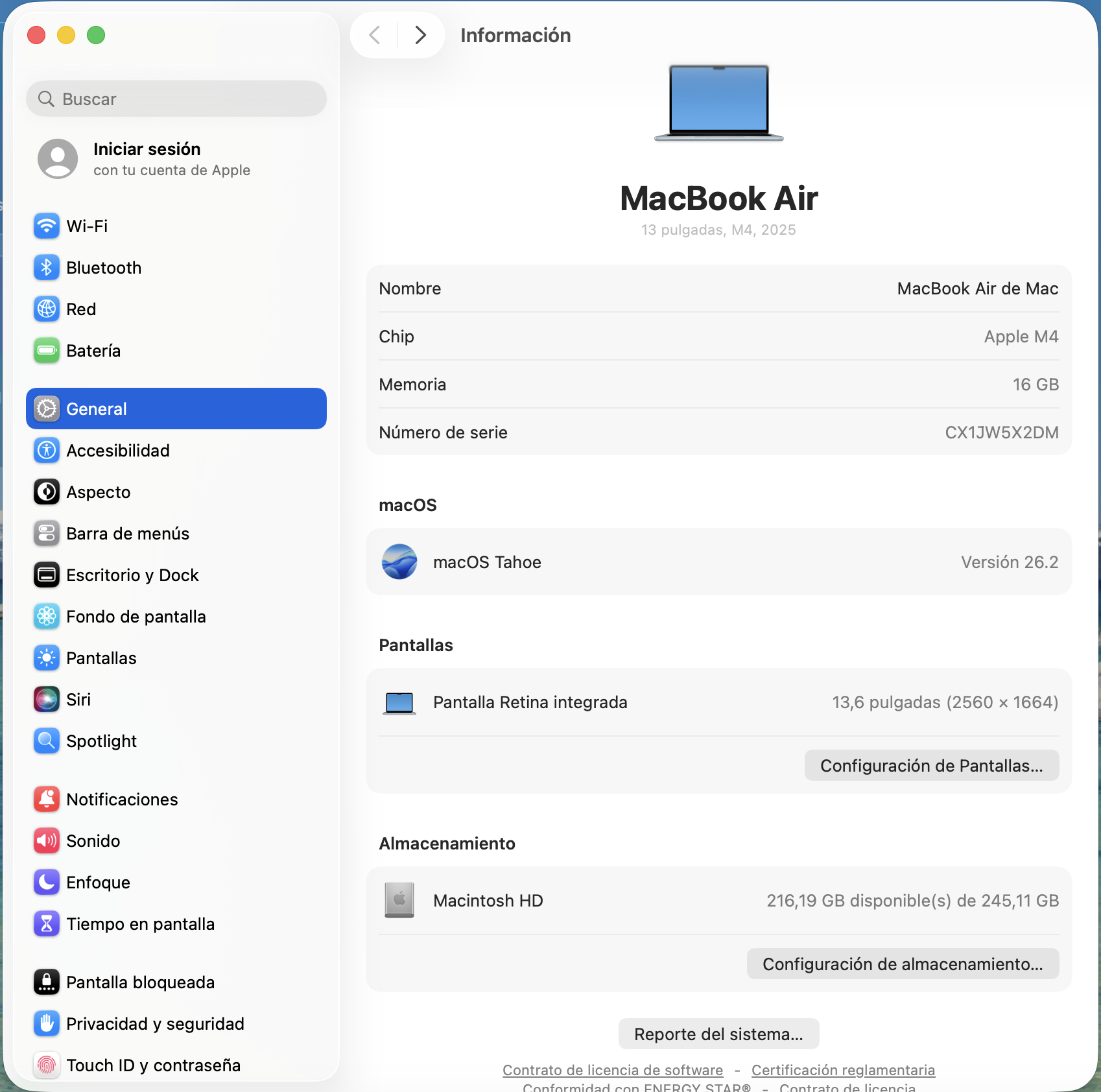 Con 16 GB de RAM y un disco SSD de 256 GB, disfrutarás de una experiencia fluida y rápida, permitiéndote realizar múltiples tareas sin esfuerzo. La pantalla Retina con una resolución de 2560 px x 1664 px garantiza imágenes nÃtidas y vibrantes, perfectas para edición de fotos, videos o simplemente disfrutar de tus series favoritas.