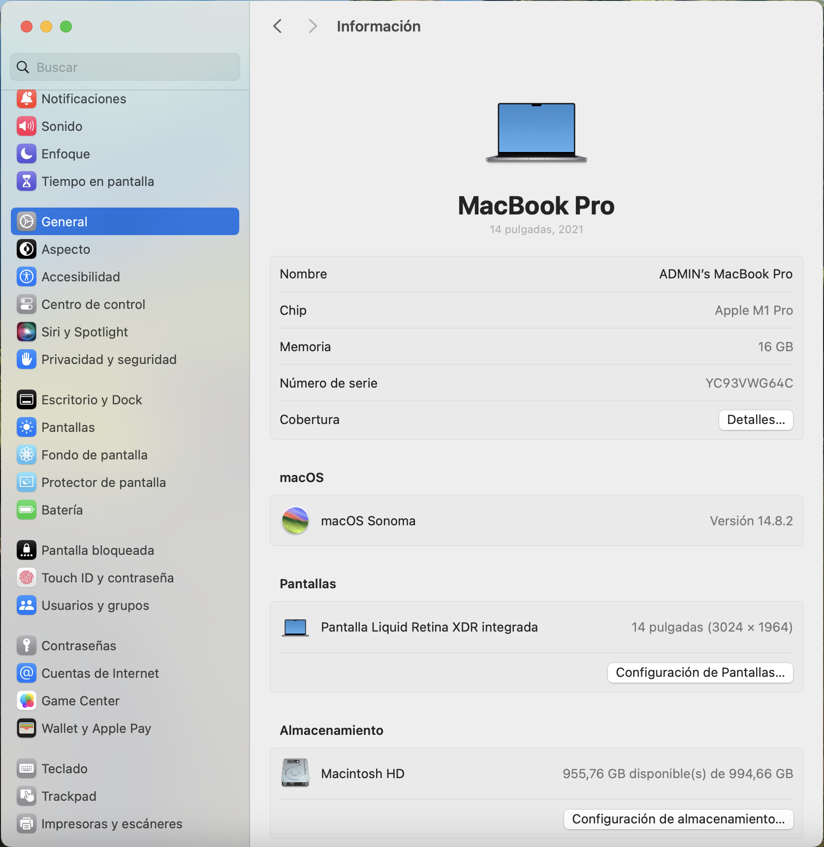 La MacBook Pro cuenta con 16 GB de memoria RAM integrada y un disco SSD de 1 TB, proporcionando un almacenamiento amplio y rápido para tus proyectos. Su baterÃa de polÃmero de litio ofrece hasta 17 horas de duración, permitiéndote trabajar sin interrupciones. Además, la conectividad USB Thunderbolt 4 asegura transferencias de datos rápidas y eficientes.